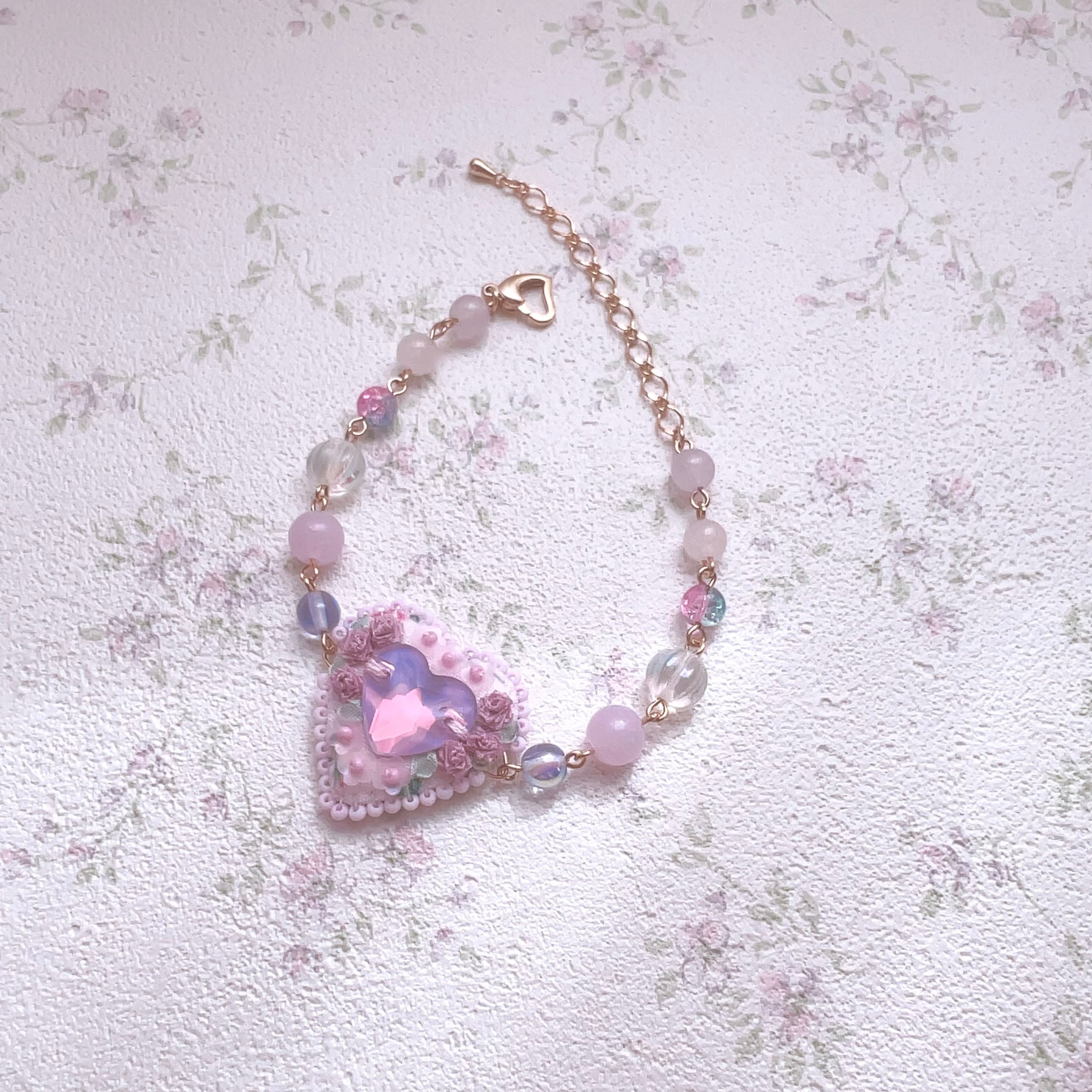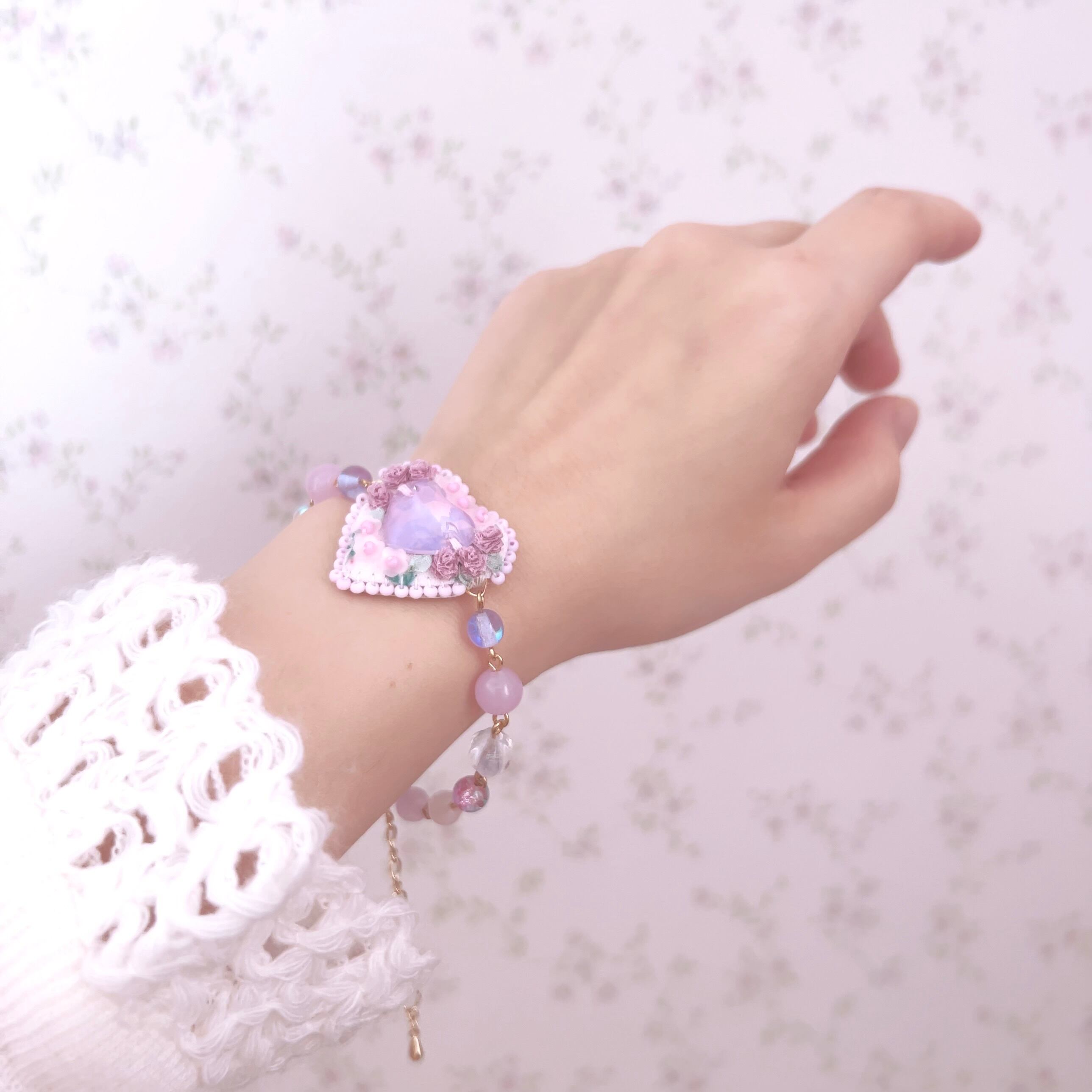 ハート型にぎゅぎゅっとお花とビジューを詰め込んだブレスレットになります♡