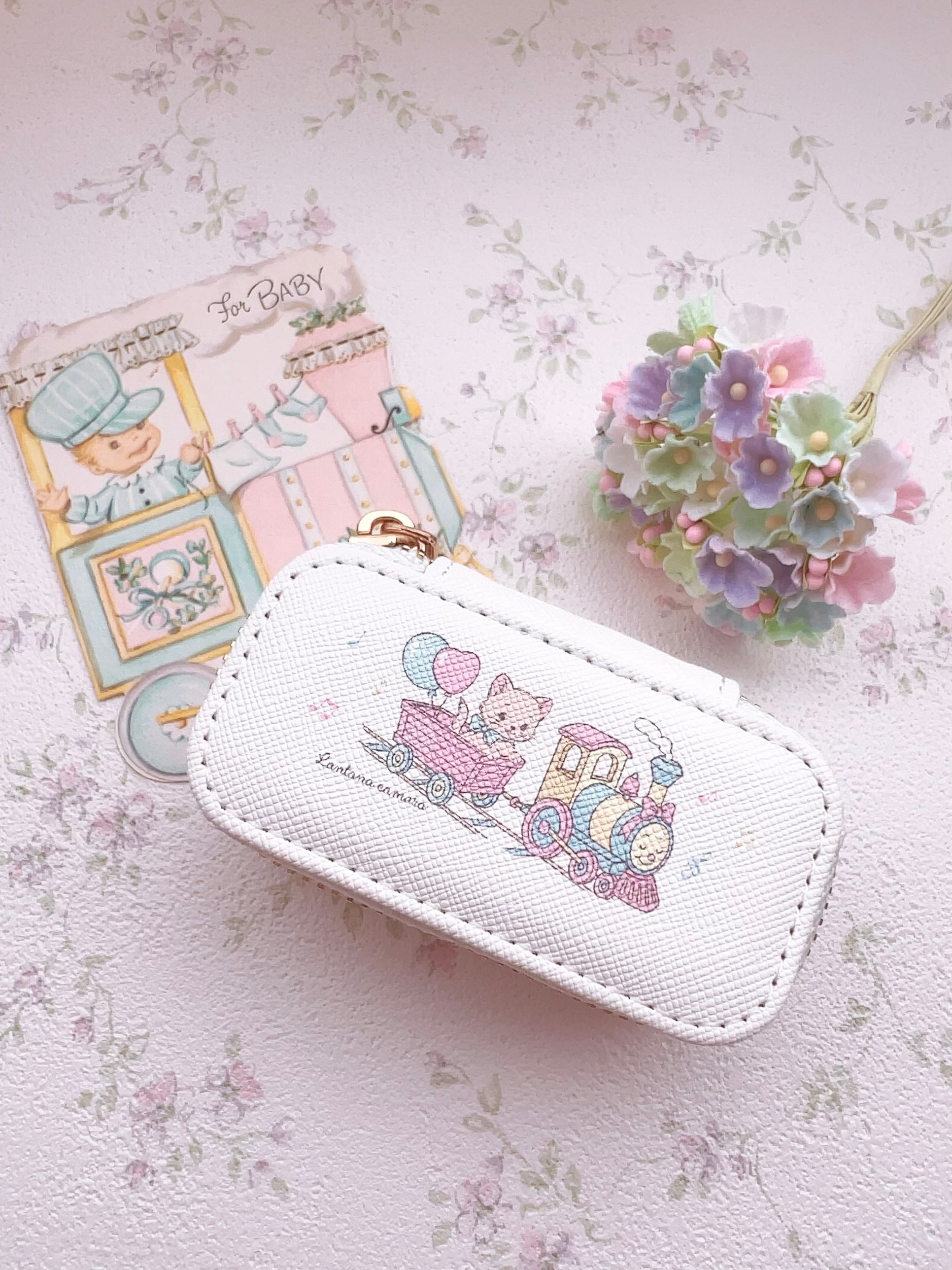 ふんわりパステルカラーの汽車に乗って、ネコちゃんは今日もおでかけ。