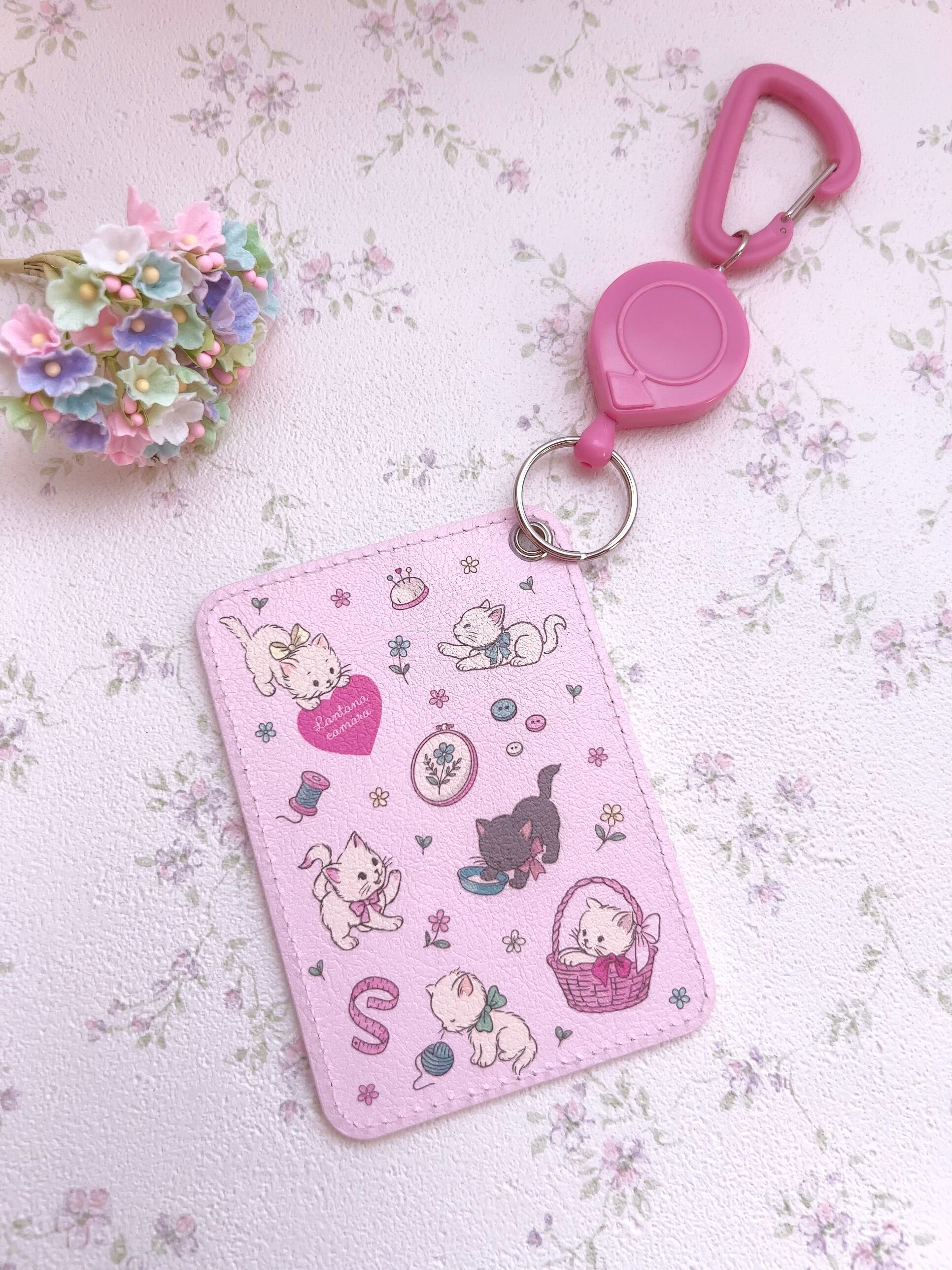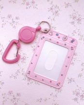ピンクのリール&カラビナ付きで、バッグにつけたままサッと使えてとっても便利♡