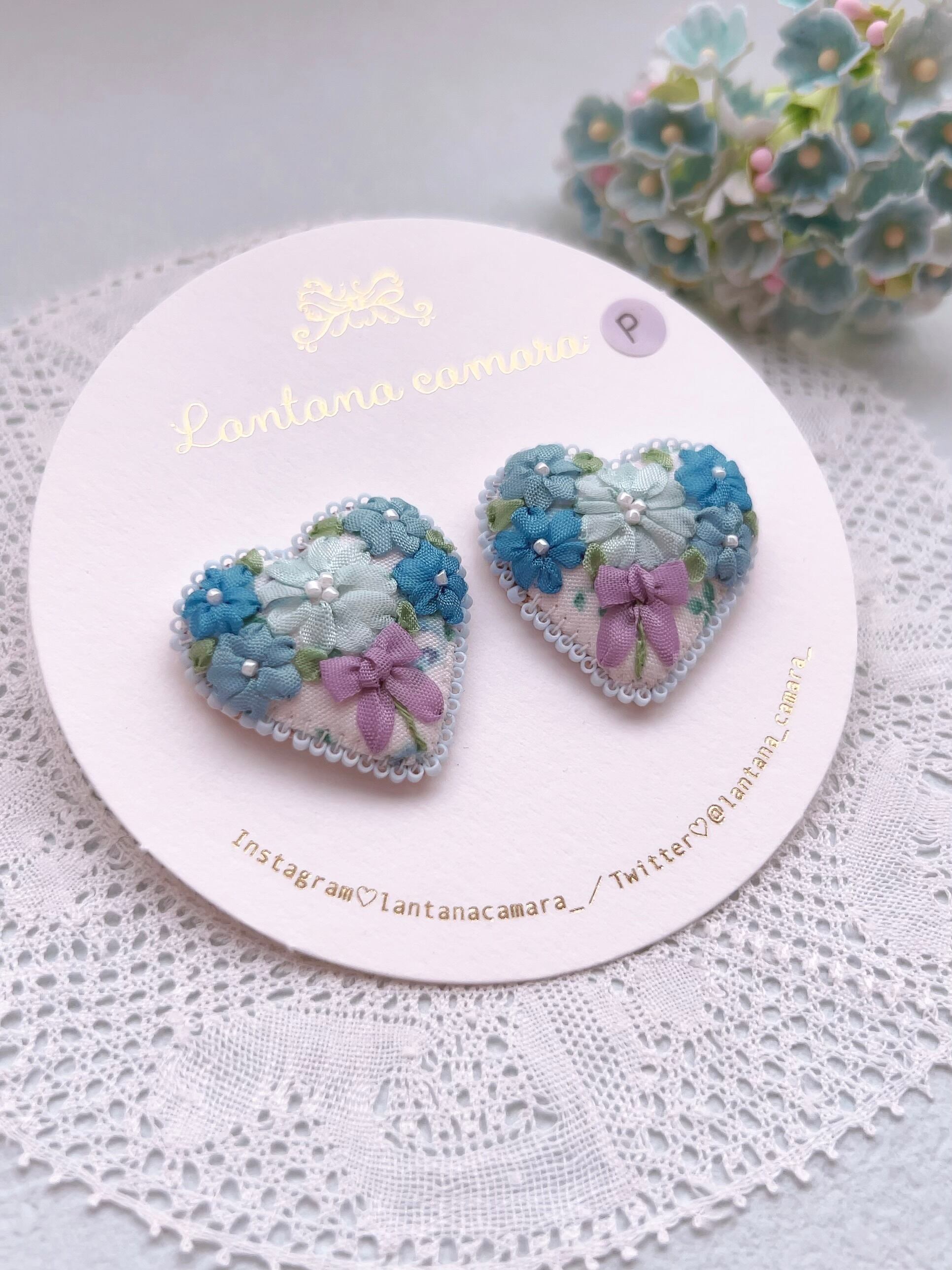 一周ぐるりとハートの縁をビーズで縫い付けており、キラリと上品に輝きます。