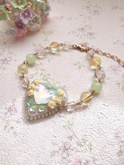 ハート型にぎゅぎゅっとお花とビジューを詰め込んだブレスレットになります♡