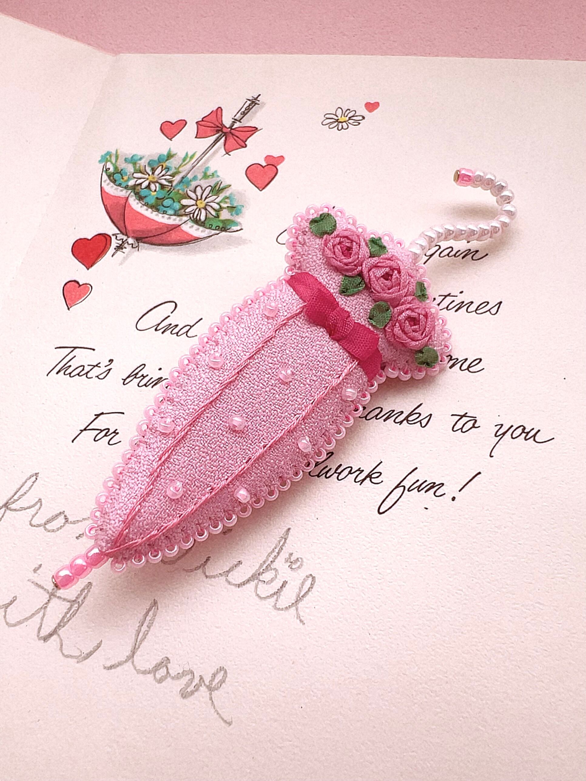 映画、シェルブールの雨傘をイメージして製作したブローチです♡