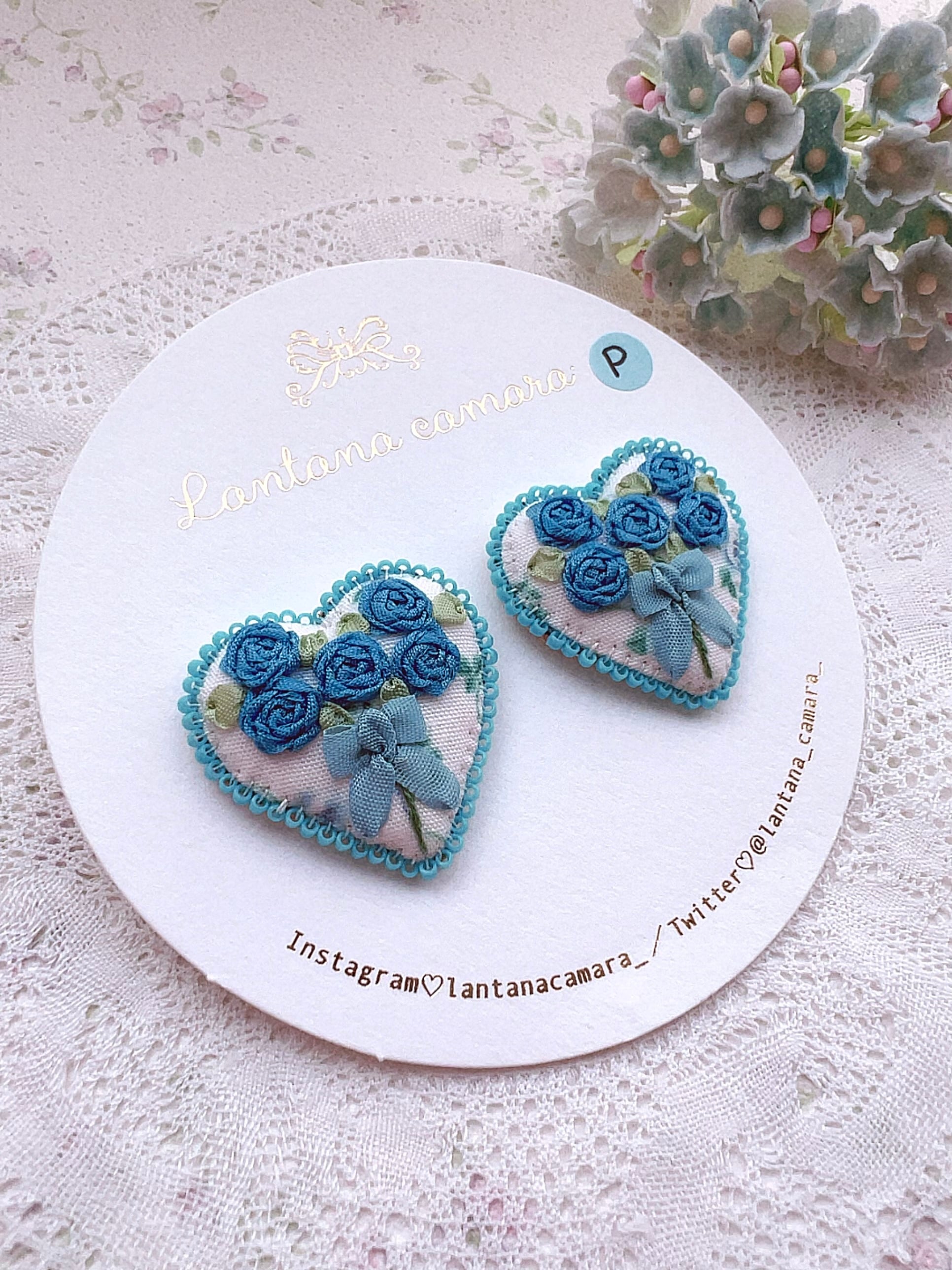一周ぐるりとハートの縁をビーズで縫い付けており、キラリと上品に輝きます。