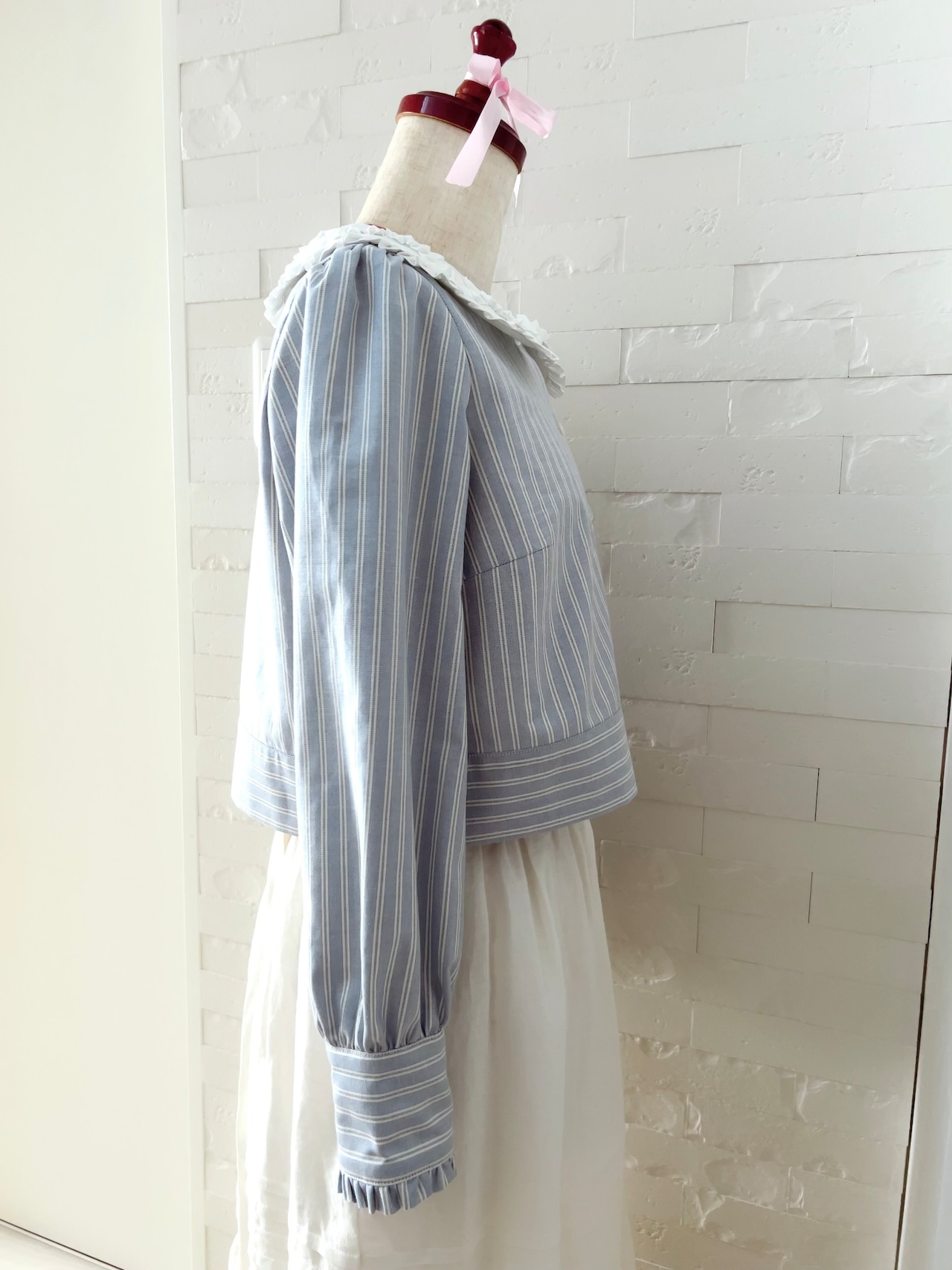 波打つフリル襟が特徴のストライプブラウスです♡