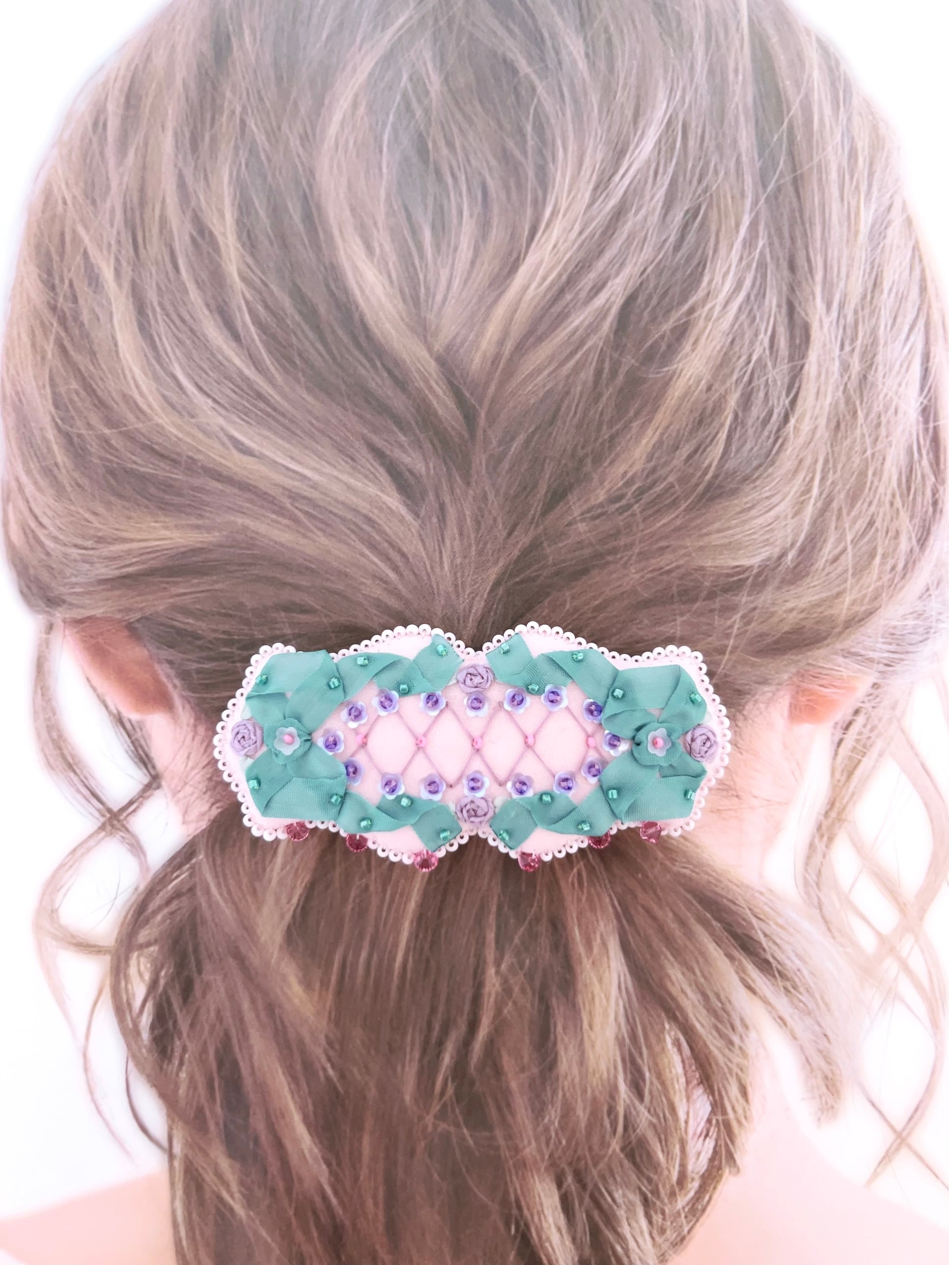 薔薇の香りを閉じ込めたような、華やかで繊細なバレッタです♡