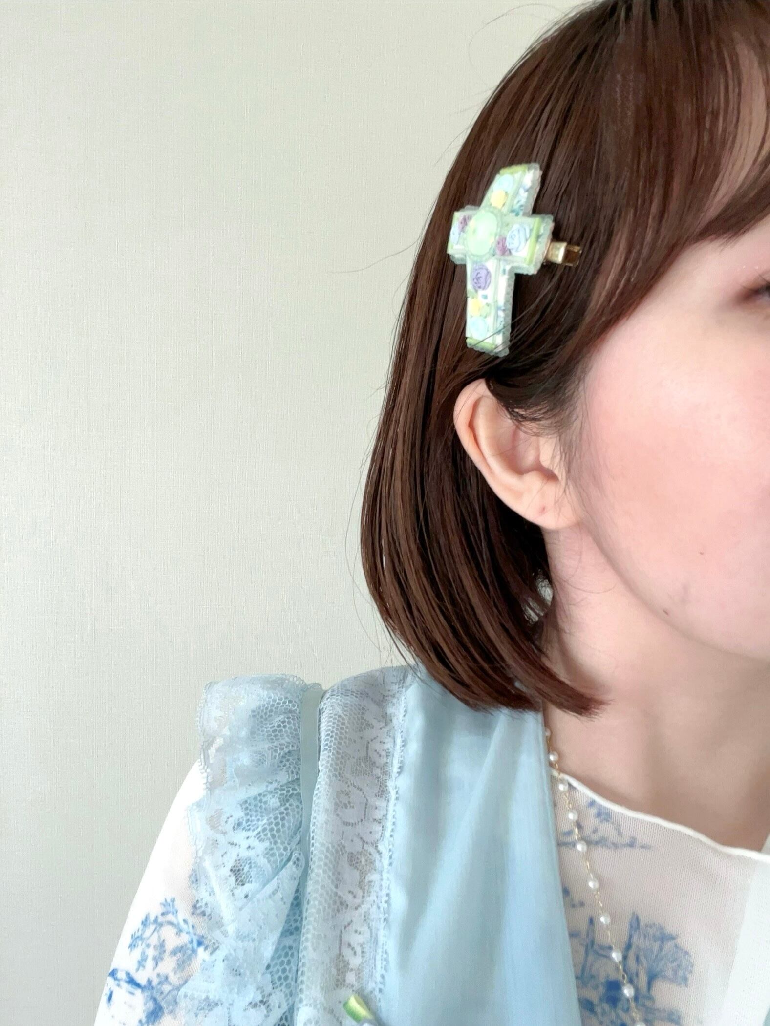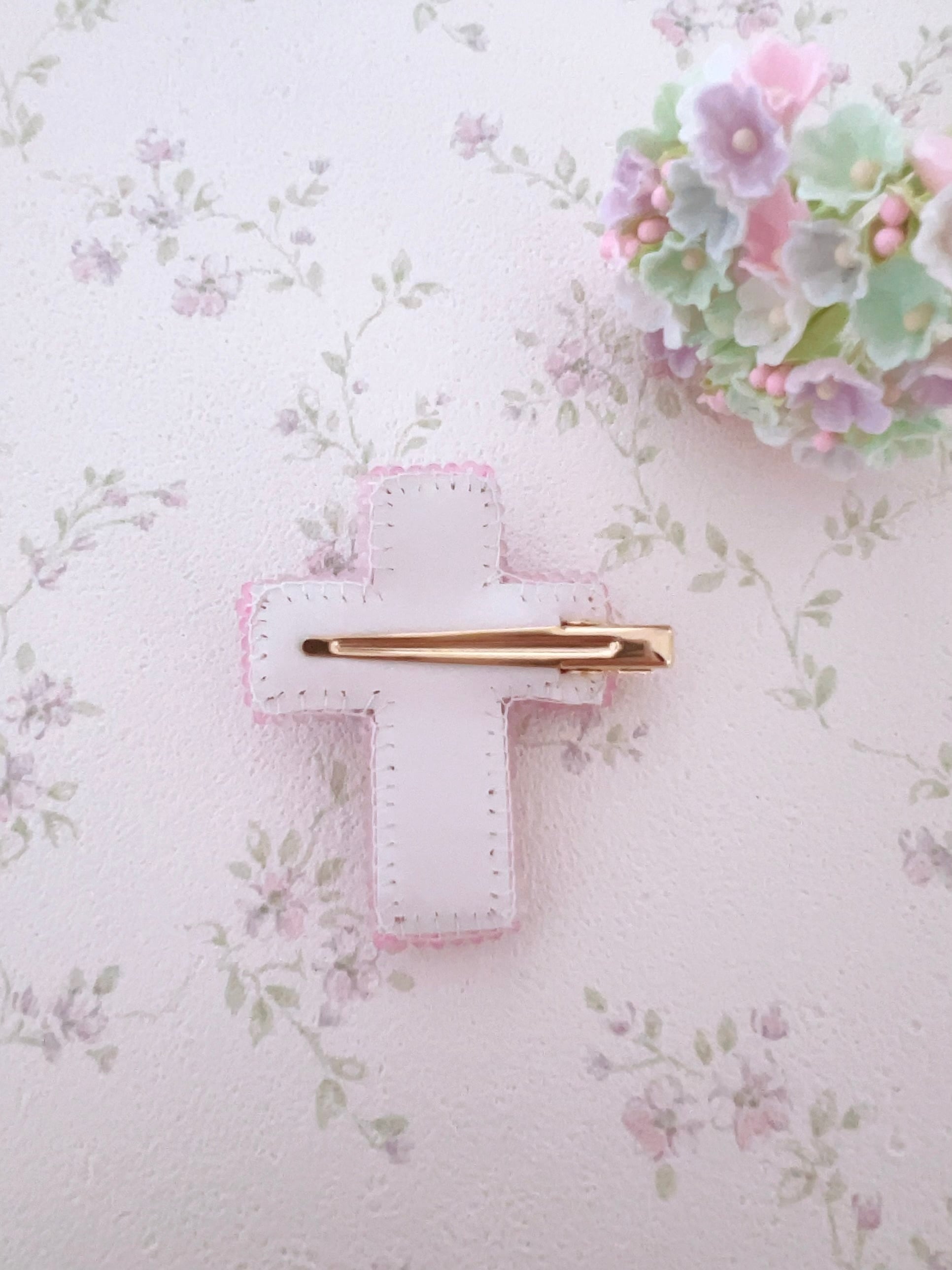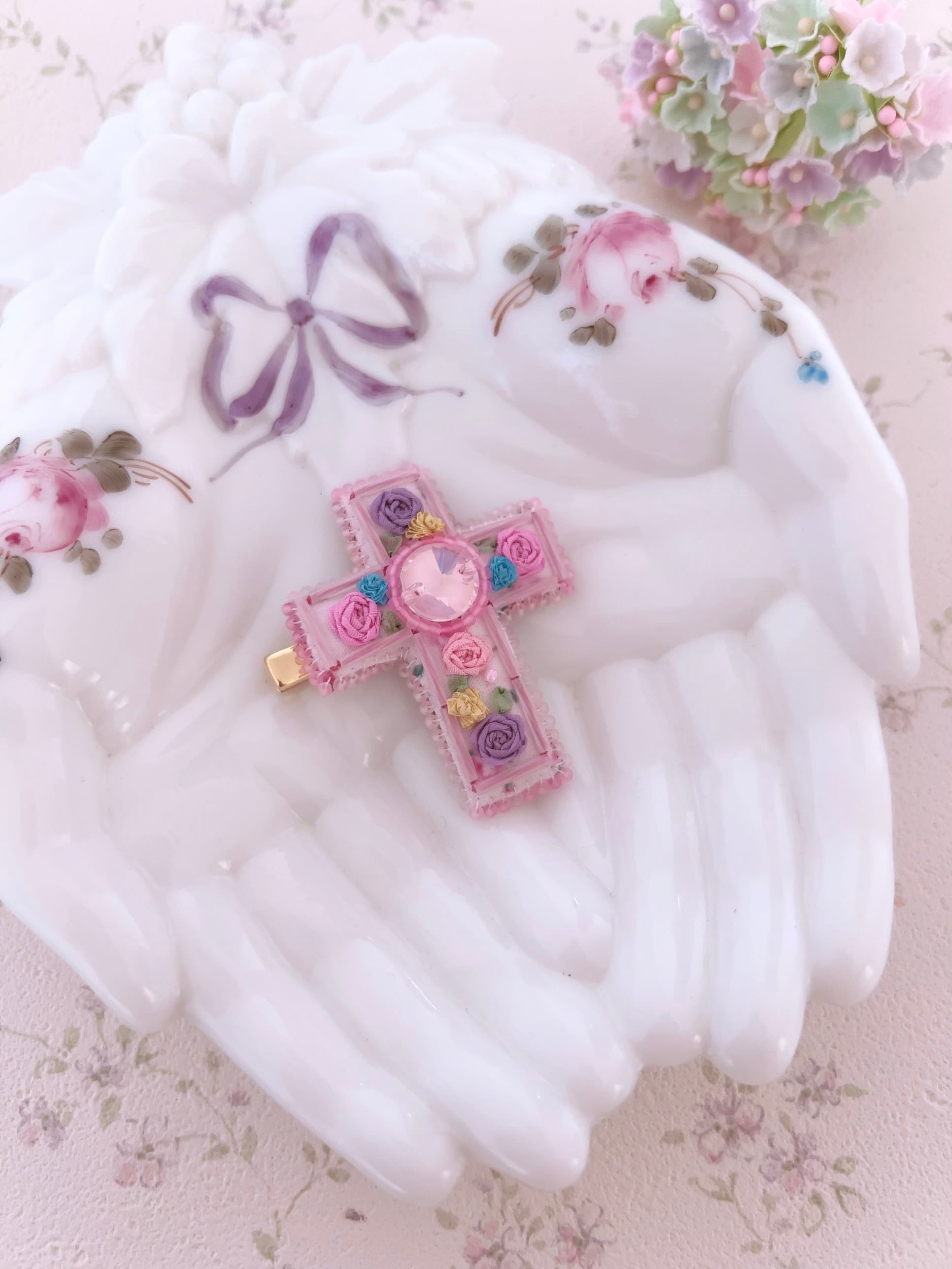 リボン刺繍にビーズやクリスタルをあしらい、ときめきを詰め込んだクリップです♡