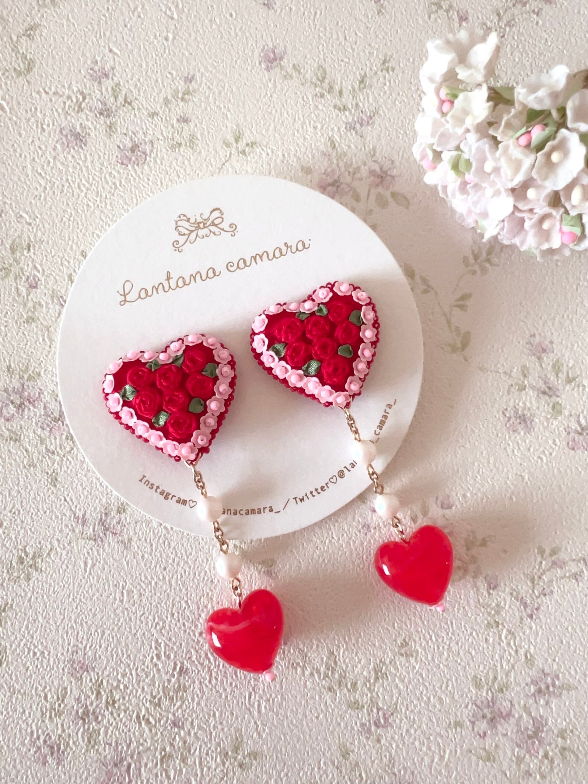 揺れる乙女心をゆらゆら揺れるハートで表したイヤリングになります♡