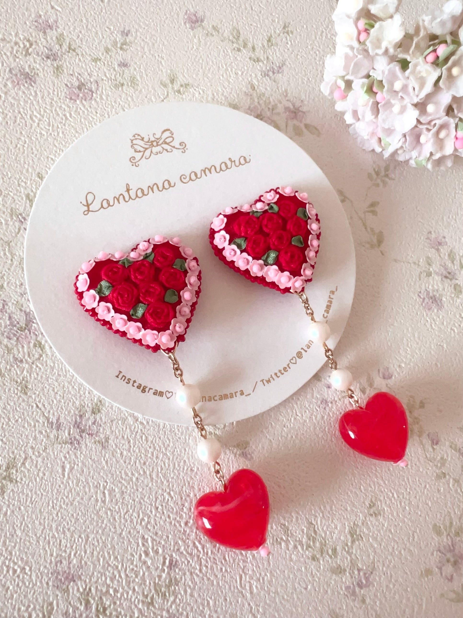 着けると先端のハートビーズが優しくゆらゆら揺れてとても可愛いです♡