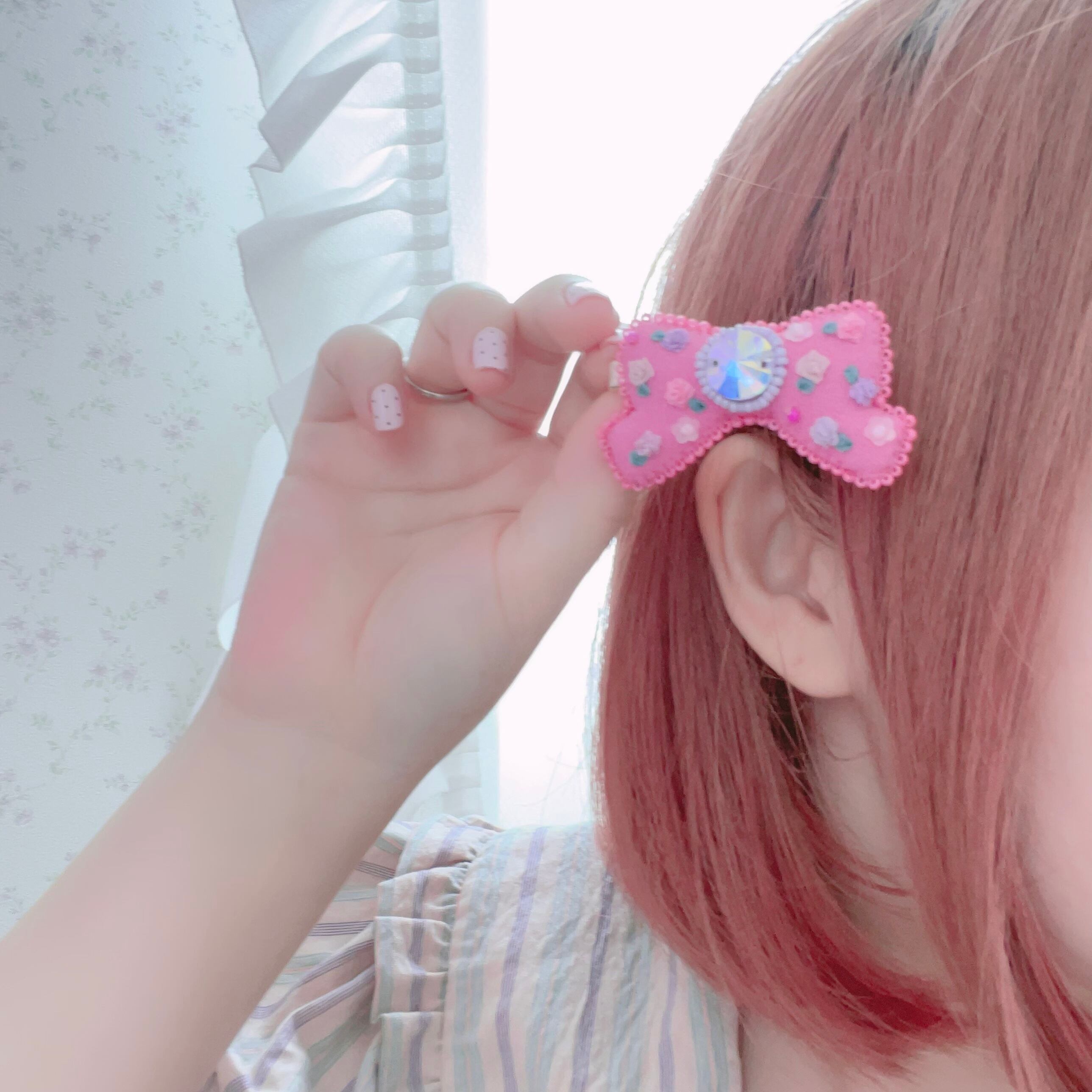 髪の毛のサイドに着けたり、ハーフアップツインテールの結び目などに着けても可愛いと思います♡